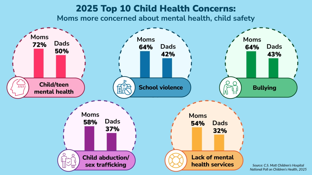83% of parents believe their kids' mental health is getting worse. 69% cite screen time as the top health concern facing children today, per a 2025 University of Michigan poll.