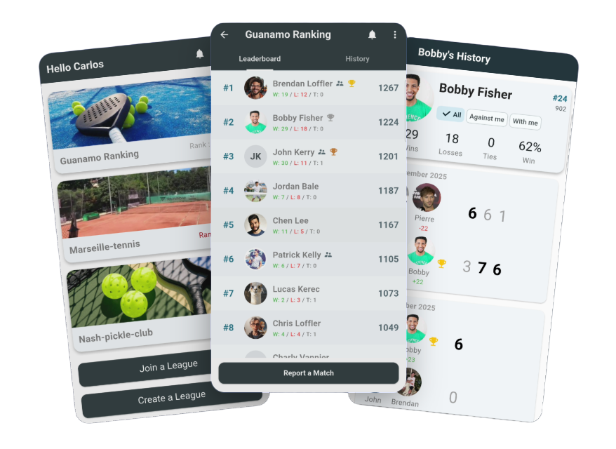 But none of them own the deeply opinionated league format layer — the promotion/relegation protocols, the doubles pairing logic, the makeup policies, the operator workflows that turn casual players into obsessive rankers.