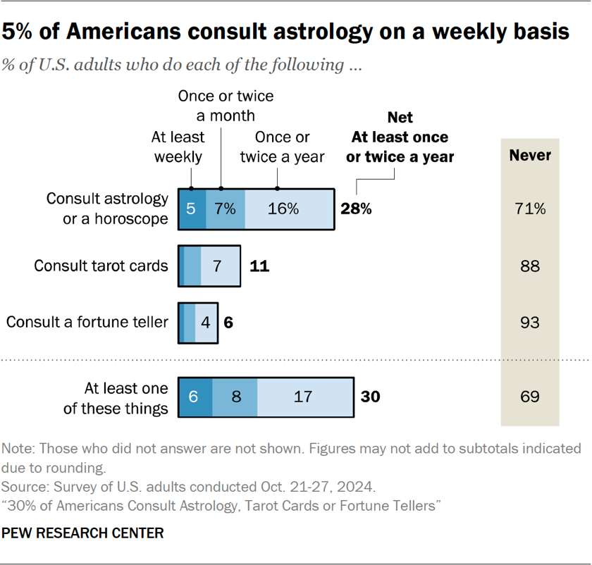 When pressed, users don't cite divine insight. They describe astrology as "helpful frameworks" for personal and professional decisions. People want structure that reduces regret and increases perceived agency in high-uncertainty environments.
