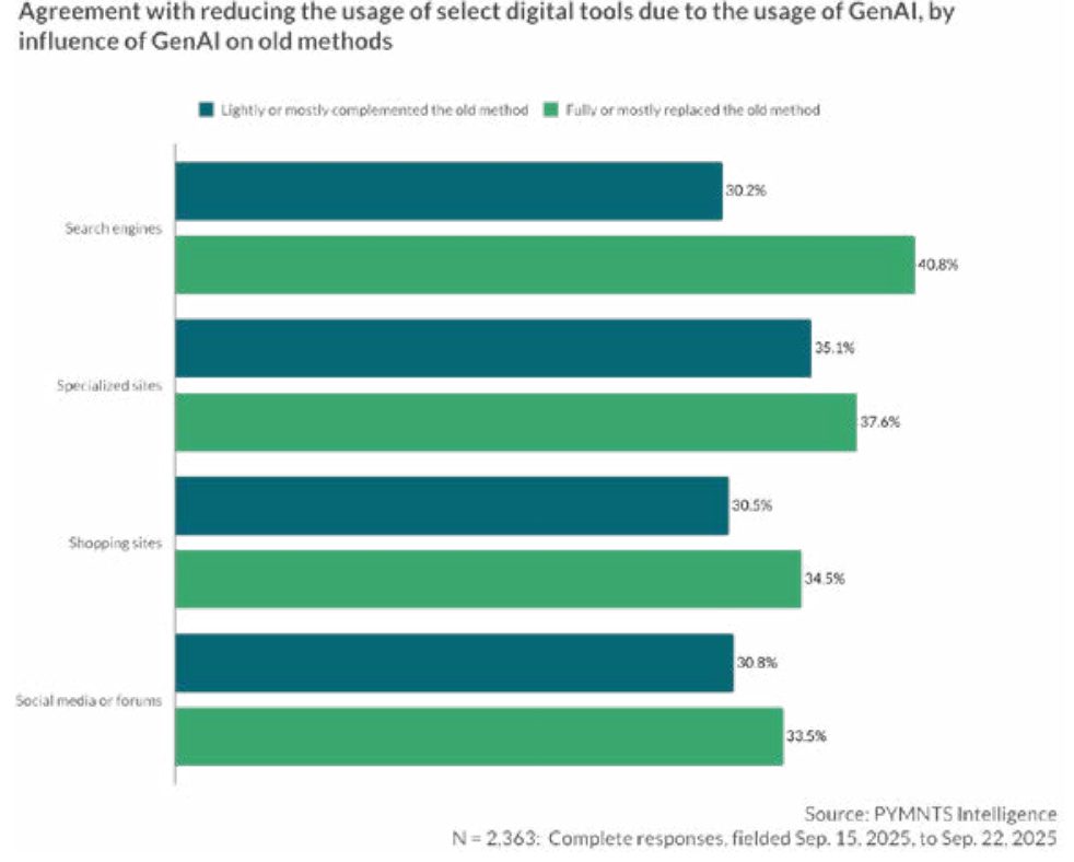 PYMNTS Intelligence puts numbers on this: roughly 30 million U.S. consumers have abandoned traditional search entirely in favor of AI-driven, outcome-oriented interactions. They call them "Prompt Economy Pros"—users who expect answers, sifting through links is work.