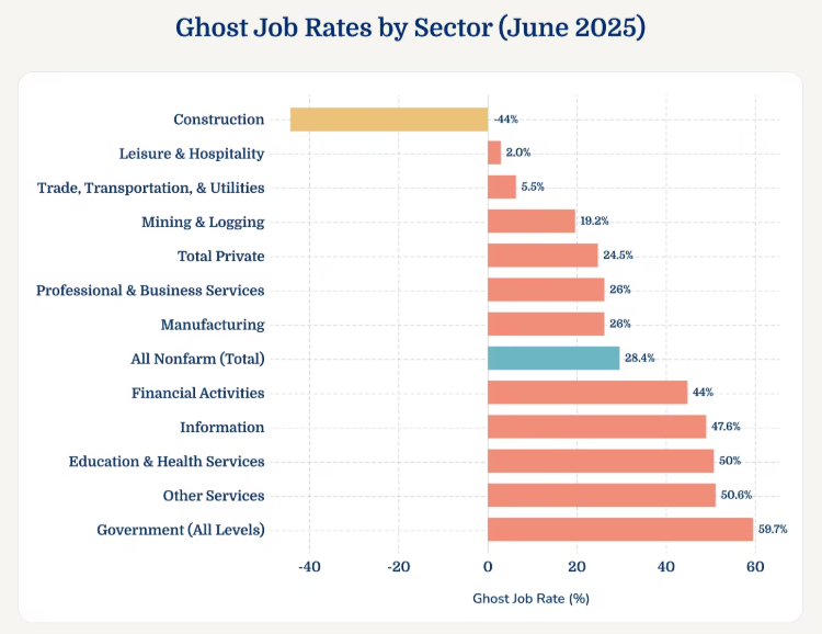 - 81% of recruiters in a Fast Company survey admitted to posting ghost jobs, with over a third saying up to 25% of their active listings are fake.