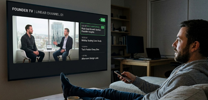 The opportunity: a lean-back streaming layer that turns YouTube archives and creator libraries into programmed, always-on channels. Cable TV for the internet, built as software. One niche channel with a single sponsor can clear $3Kโ$8K/month in the first quarter. At 500 creator-operated channels, the SaaS path to $50Kโ$100K+ MRR opens inside 18 months with near-zero marginal cost per channel added. A content curation startup idea riding the fastest-growing segment in streaming.