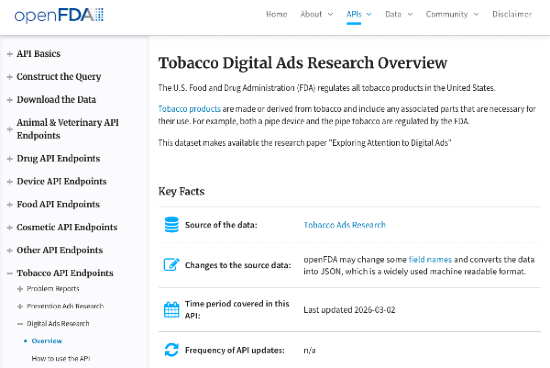 On February 17, 2026, openFDA published two new datasets: Tobacco Digital Ads Research and Tobacco Prevention Ads Research. Both are available via API, downloadable as JSON, and broken into machine-readable fields that decompose creative ads into analyzable components: formats, channels, messaging structures. Most people will read this as "FDA released another research dataset." The better read: a federal agency just gave you structured training data for one of the hardest problems in modern marketing — getting attention in categories where a single bad phrase, one youth-coded visual, or one unsupported claim can get your ad pulled, your account disabled, or a regulator interested.