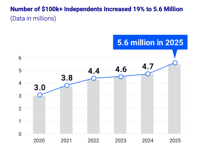 Meanwhile, roughly 72.9 million Americans now work independently — and a meaningful share earn over $100K, which means a large, economically valuable pool of "income tribes" that need tax clarity yesterday. The IRS explicitly warns that self-employment tax rules kick in at just $400 of net earnings, even if income is not fully reported on a 1099. Millions of people are earning internet-native income while feeling functionally illiterate about the tax rules surrounding it.