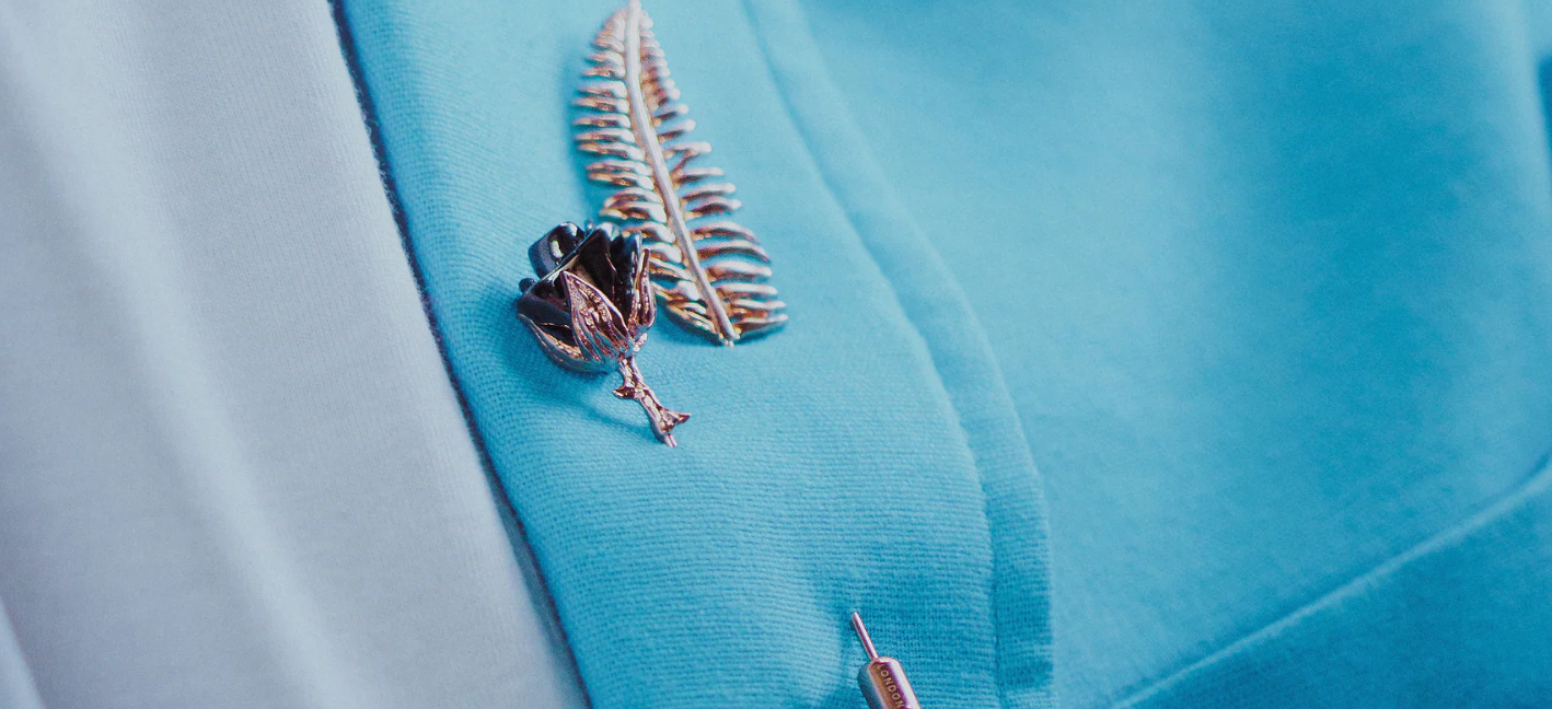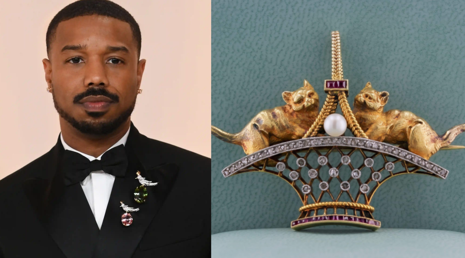 Within that wave, brooches and lapel pins are having a specific, verifiable moment. Pinterest's 2026 trend forecast — which has a strong track record of calling consumer behavior before it goes mainstream — names "Brooched" as a breakout category. Searches for "brooch aesthetic" are up 110%, "maximalist accessories" up 105%, "brooch for men suit" up 90%, driven primarily by Millennial and Boomer men. The 2025 Oscars confirmed it on the biggest stage in fashion: Omar Apollo wore a Chopard lizard brooch, Colman Domingo pinned a vintage 1956 Boucheron ribbon clip, Adrien Brody accepted Best Actor wearing a diamond bird brooch, and Kieran Culkin showed up in a Fred Leighton pin set with his family's birthstones. Variety called brooches the menswear accessory of the night.