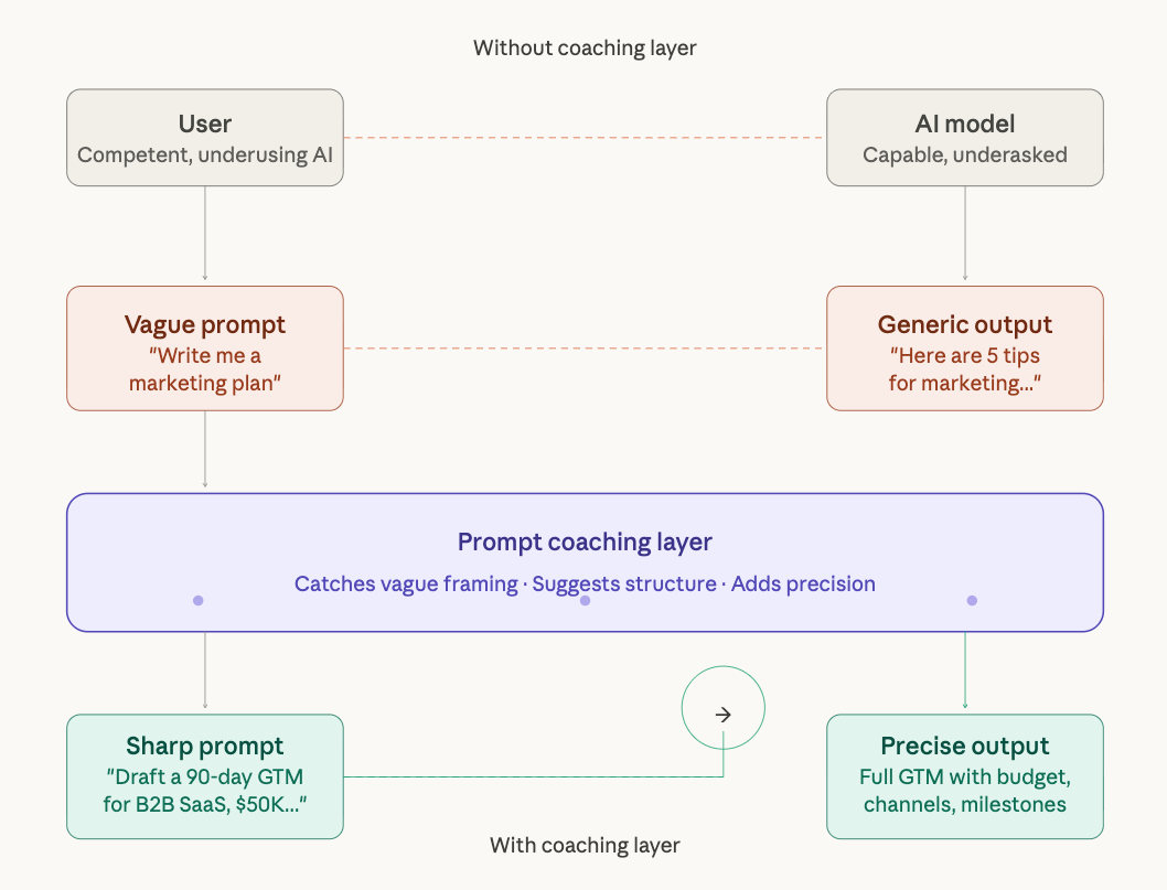 A coaching layer that makes every AI interaction measurably better, and makes the user feel the difference.