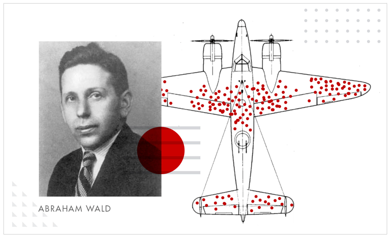 Bombers are getting decimated over Europe. The generals hand a stack of diagrams to Abraham Wald at Columbia’s Statistical Research Group. The data is clear: returning planes are riddled with bullet holes along the wings and fuselage.