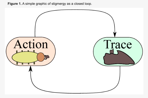 Coined by biologist Pierre-Paul Grassé, the mechanism is counter-intuitive: Don't talk to the worker; talk to the work.