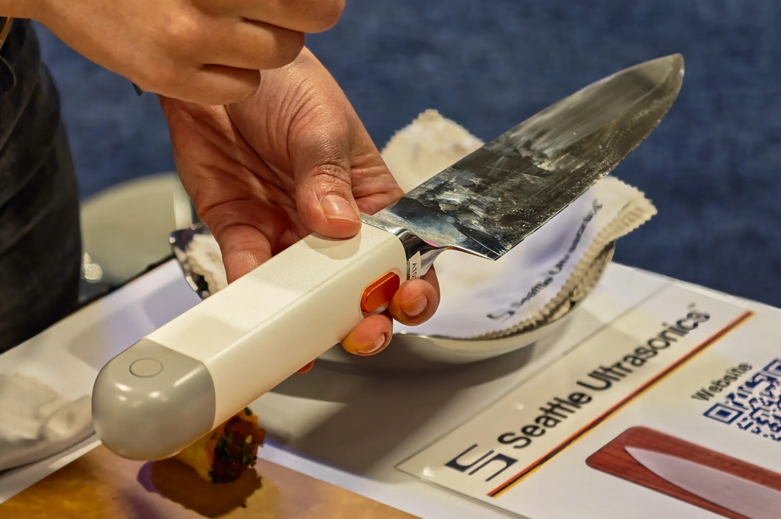 At CES 2026, Seattle Ultrasonics showed a chef's knife whose blade vibrates 40,000 times per second. First production run sold out at $399. Six years of R&D proved you could fit safe, effective ultrasonic modules into a handheld consumer tool with rechargeable batteries, IP65 water resistance, and USB-C charging.