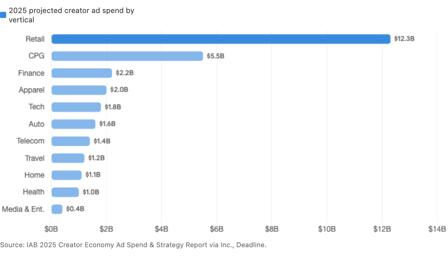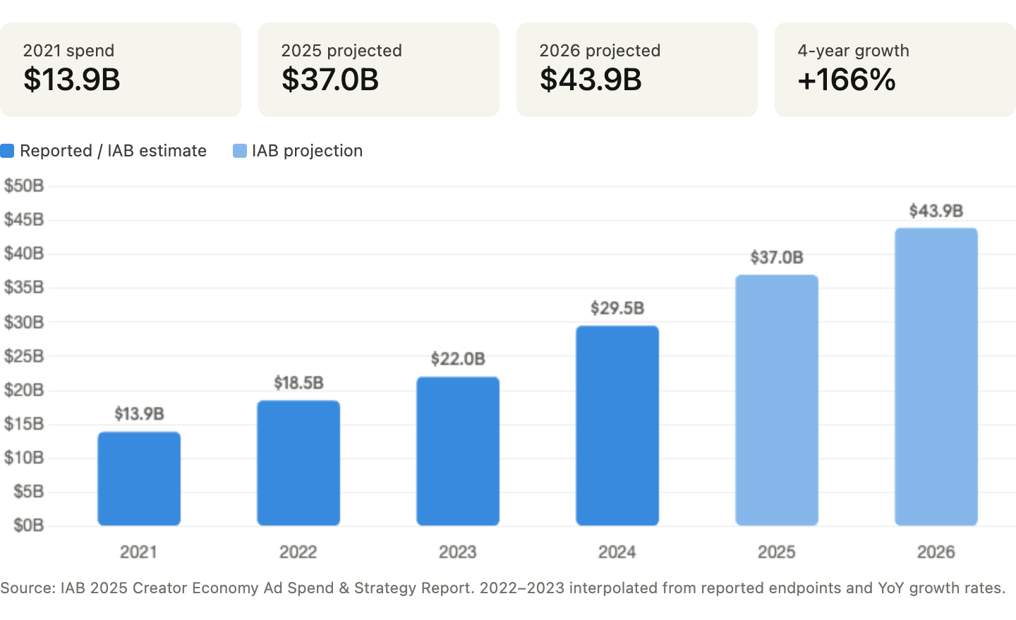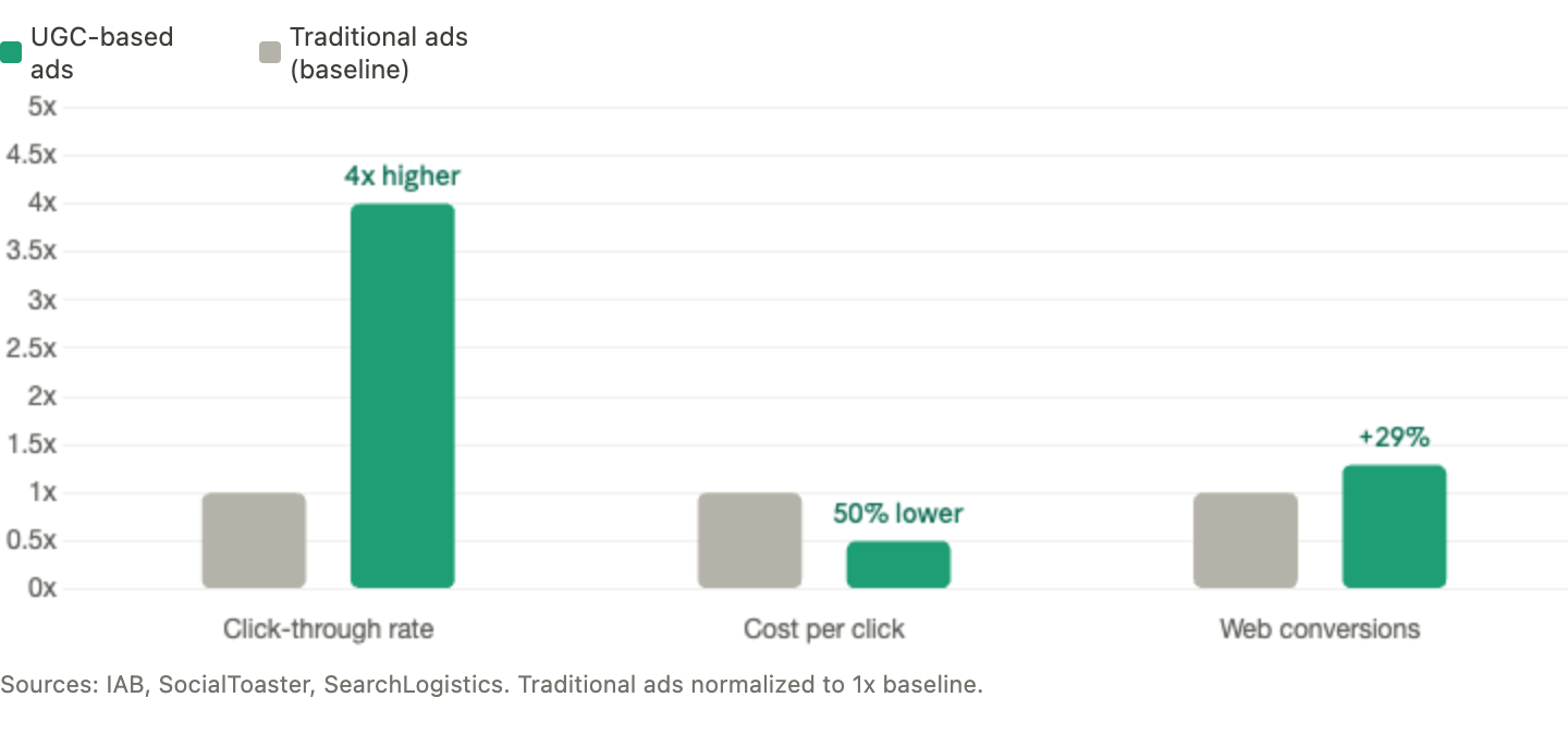 The market context makes this worth moving on quickly. YouTube Shorts now exceeds 2 billion monthly active users globally and generates over 200 billion daily views. U.S. creator ad spend is projected at $37 billion for 2025 according to the IAB, up 26% year over year and roughly four times faster than the overall media industry. That spend more than doubled since 2021. Nearly half of ad buyers now consider creators a "must buy" channel. Retail alone is projected to spend $12.3 billion on creator ads. UGC-based ads achieve four times higher click-through rates and 50% lower cost-per-click compared to traditional creative. Brands using UGC see 29% higher web conversions.