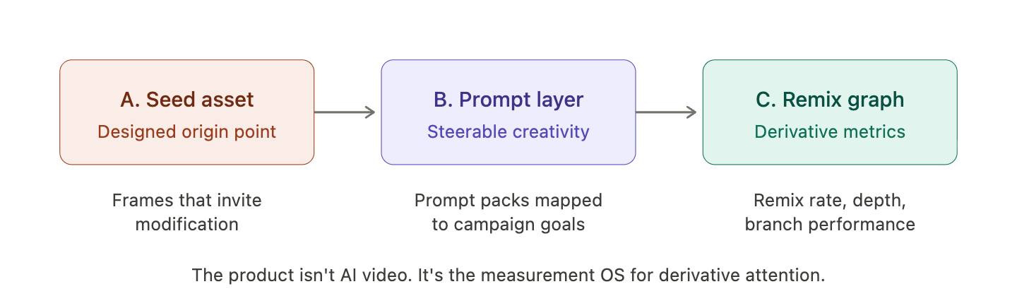 This gives you a wedge into what could become a new campaign category: remix-native campaign infrastructure. The most valuable company in this space won't be "AI for Shorts." It's the software layer that helps brands, agencies, and creators intentionally publish reimaginable media, then measure and govern what happens after viewers start creating derivatives.